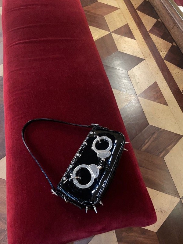 Cuenta con esposas reales adquiridas en local de antigüedades. No incluyen llaves y no son desmontables.