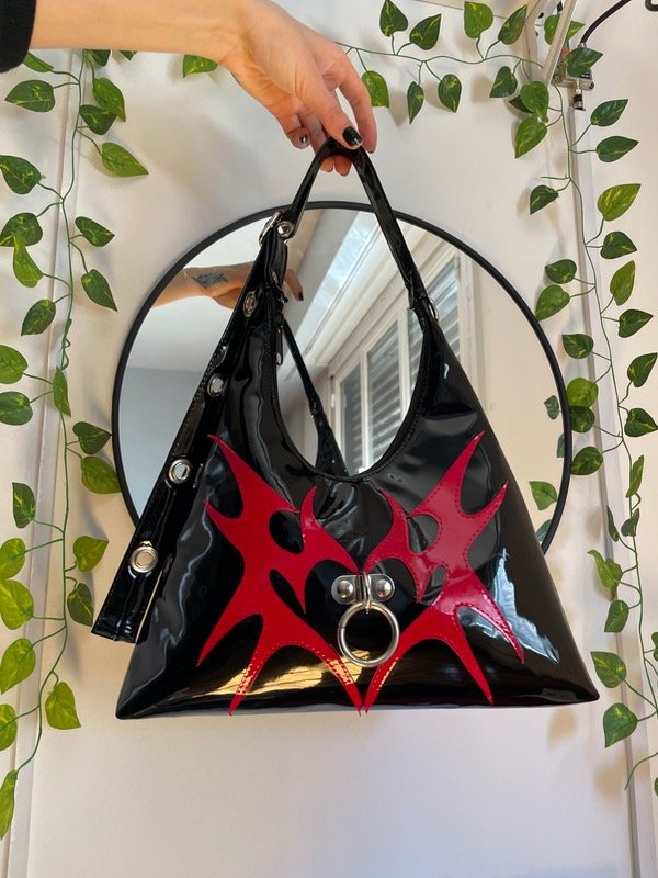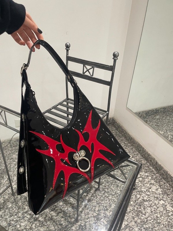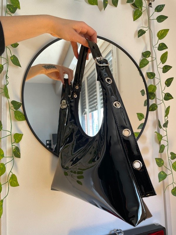 ⋆. 𐙚 ˚Confeccionada en charol, con asa regulable y cierre superior. Interior forrado en eco cuero con bolsillo interno.⋆. 𐙚 ˚